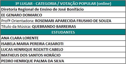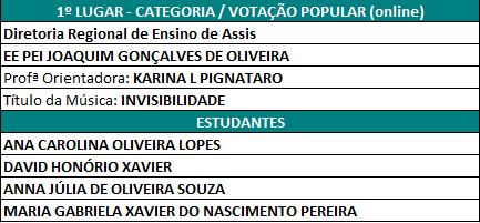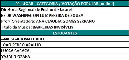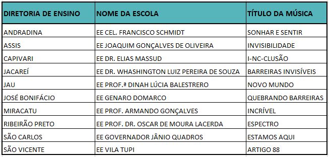 A Secretaria da Educação do Estado de São Paulo, por intermédio do CRE Mario Covas e da EFAPE, em articulação com o Departamento de Modalidades Educacionais e Atendimento Especializado e da Coordenadoria Pedagógica (COPED), em parceria com o Ministério Público do Estado de São Paulo, institui o CONCURSO DE MÚSICA – Vozes Pela Igualdade de Gênero – 6ª edição/2023: Todo corpo tem voz “Nada sobre nós, sem nós”.